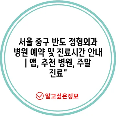 ✅ 서울 중구 반도 정형외과의 진료시간과 예약 방법을 알아보세요.