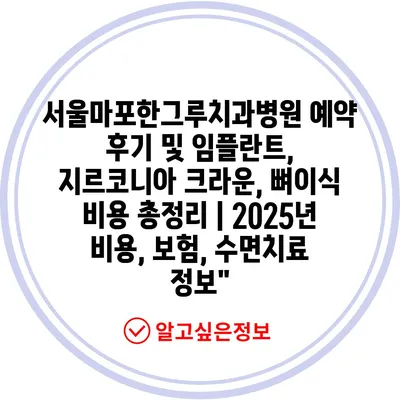서울마포한그루치과병원 예약 후기 및 임플란트, 지르코니아 크라운, 뼈이식 비용 총정리 | 2025년 비용, 보험, 수면치료 정보” 에 대해 자주 묻는 질문 TOP 5