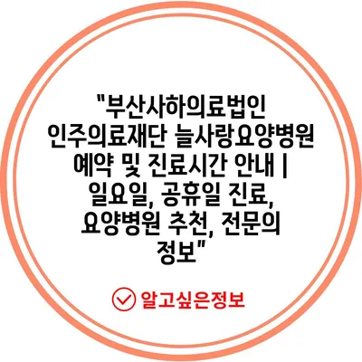 “부산사하의료법인 인주의료재단 늘사랑요양병원 예약 및 진료시간 공지 | 일요일, 공휴일 진료, 요양병원 추천, 전연락 정보” 에 대해 자주 묻는 질문 TOP 5