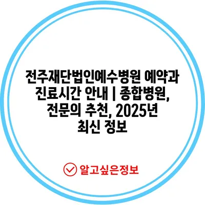 전주재단법인예수병원 예약과 진료시간 공지 | 종합병원, 전연락 추천, 2025년 최신 정보 에 대해 자주 묻는 질문 TOP 5