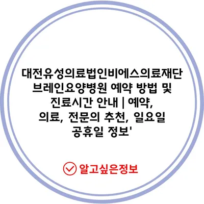 ✅ 대전유성의료법인비에스의료재단 브레인요양병원의 예약 방법과 진료 시간을 자세히 알아보세요.