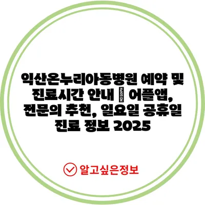 ✅ 익산온누리아동병원 예약 방법과 필수 정보를 알아보세요.