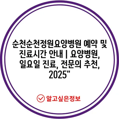 순천순천정원요양병원 예약 및 진료시간 공지 | 요양병원, 일요일 진료, 전연락 추천, 2025″ 에 대해 자주 묻는 질문 TOP 5