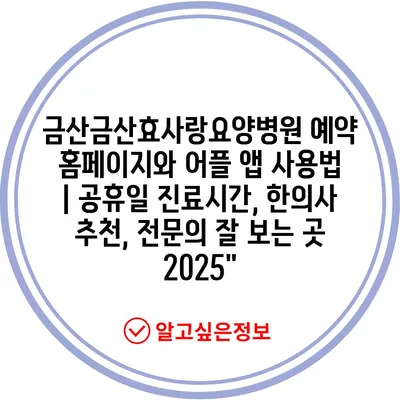 금산금산효사랑요양병원 예약 홈페이지와 어플 앱 사용법 | 공휴일 진료시간, 한의사 추천, 전문의 잘 보는 곳 2025″