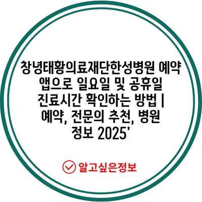 창녕태황의료재단한성병원 예약 앱으로 일요일 및 공휴일 진료시간 확인하는 방법 | 예약, 전연락 추천, 병원 정보 2025′ 에 대해 자주 묻는 질문 TOP 5