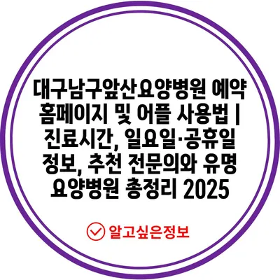 대구남구앞산요양병원 예약 홈페이지 및 어플 사용법 | 진료시간, 일요일·공휴일 정보, 추천 전연락와 유명 요양병원 총정리 2025