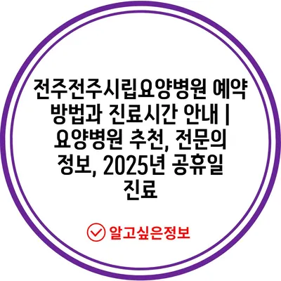✅ 전주전주시립요양병원 예약 방법과 진료시간을 자세히 알아보세요!