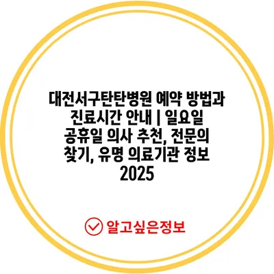 대전서구탄탄병원 예약 방법과 진료시간 공지 | 일요일 공휴일 의사 추천, 전연락 찾기, 유명 의료기관 정보 2025