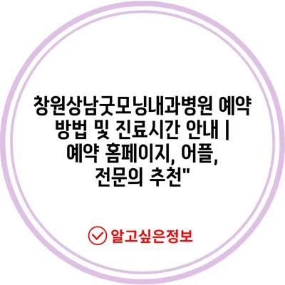 창원상남굿모닝내과병원의 예약 방법을 지금 바로 알아보세요!