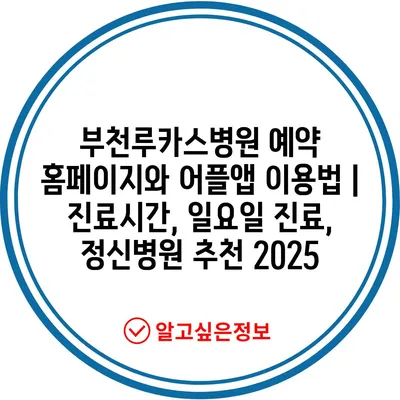 부천루카스병원 예약 홈페이지와 어플앱 이용법 | 진료시간, 일요일 진료, 정신병원 추천 2025에 대해 알아보겠습니다.