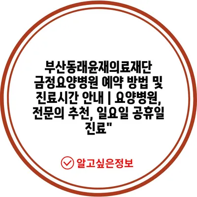 부산동래윤재의료재단 금정요양병원 예약 방법 및 진료시간 공지 | 요양병원, 전연락 추천, 일요일 공휴일 진료” 에 대해 자주 묻는 질문 TOP 5