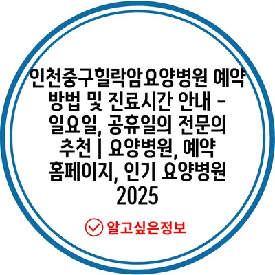 인천중구힐락암요양병원 예약 방법 및 진료시간 공지 – 일요일, 공휴일의 전연락 추천 | 요양병원, 예약 홈페이지, 인기 요양병원 2025 에 대해 자주 묻는 질문 TOP 5