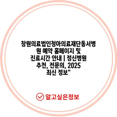 창원의료법인청아의료재단동서병원 예약 홈페이지 및 진료시간 공지 | 정신병원 추천, 전연락, 2025 최신 정보
