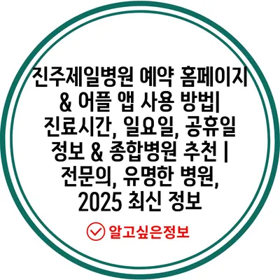 진주제일병원 예약 홈페이지 & 어플 앱 사용 방법| 진료시간, 일요일, 공휴일 정보 & 종합병원 추천 | 전연락, 유명한 병원, 2025 최신 정보 에 대해 자주 묻는 질문 TOP 5