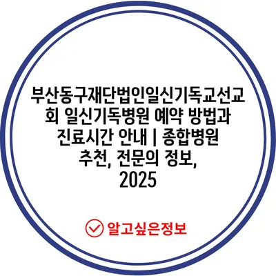 ✅ 부산동구 일신기독병원의 예약 절차와 진료시간을 자세히 알아보세요.