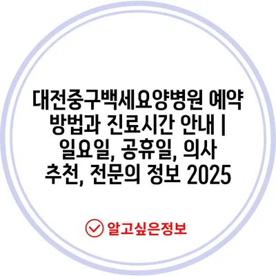 ✅ 대전중구백세요양병원의 예약 방법과 진료 시간을 자세히 확인하세요.