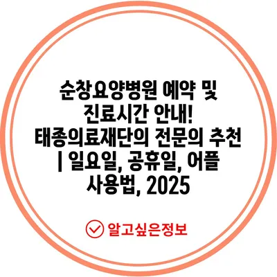 순창요양병원 예약 및 진료시간 공지! 태종의료재단의 전연락 추천 | 일요일, 공휴일, 어플 사용법, 2025