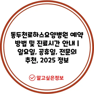 동두천로하스요양병원 예약 방법 및 진료시간 안내 | 일요일, 공휴일, 전문의 추천, 2025 정보