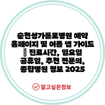 순천성가롤로병원 예약 홈페이지 및 어플 앱 설명서 | 진료시간, 일요일 공휴일, 추천 전연락, 종합병원 정보 2025 에 대해 자주 묻는 질문 TOP 5