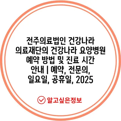 전주의료법인 건강나라 의료재단의 건강나라 요양병원 예약 방법 및 진료 시간 안내 | 예약, 전문의, 일요일, 공휴일, 2025