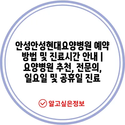 ✅ 안성안성현대요양병원 예약 방법과 진료시간을 지금 바로 알아보세요!