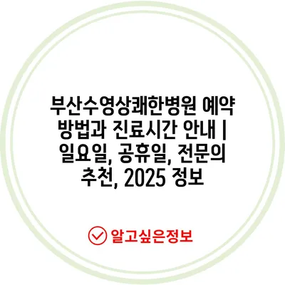 부산수영상쾌한병원 예약 방법과 진료시간 공지 | 일요일, 공휴일, 전연락 추천, 2025 정보에 대해 자주 묻는 질문 TOP 5