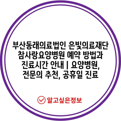 부산동래의료법인 은빛의료재단 참사랑요양병원 예약 방법과 진료시간 공지 | 요양병원, 전연락 추천, 공휴일 진료 에 대해 자주 묻는 질문 TOP 5