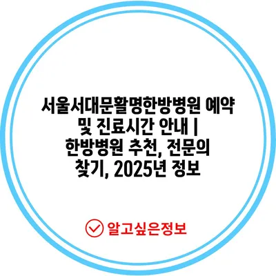 ✅ 2025년 서울서대문활명한방병원 진료시간과 예약 방법을 알아보세요.