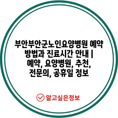 ✅ 부안부안군노인요양병원의 예약 방법과 진료시간을 자세히 알아보세요.