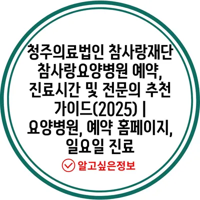 청주의료법인 참사랑재단 참사랑요양병원 예약, 진료시간 및 전문의 추천 가이드(2025) | 요양병원, 예약 홈페이지, 일요일 진료