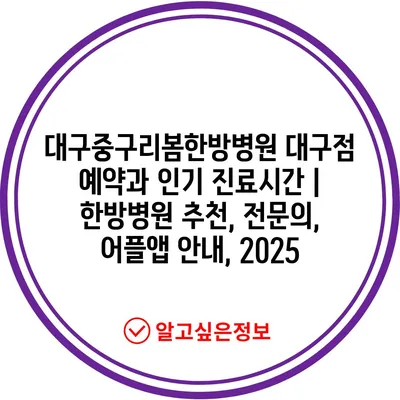 ✅ 대구중구리봄한방병원의 인기 진료시간과 예약 방법을 알아보세요.