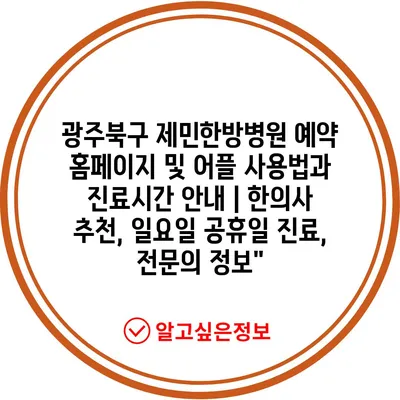 광주북구 제민한방병원 예약 홈페이지 및 어플 사용법과 진료시간 공지 | 한의사 추천, 일요일 공휴일 진료, 전연락 정보”에 대해 자주 묻는 질문 TOP 5