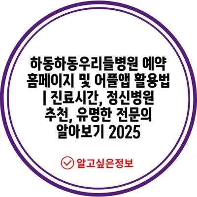 하동하동우리들병원 예약 홈페이지 및 어플앱 활용법 | 진료시간, 정신병원 추천, 유명한 전연락 알아보기 2025 에 대해 자주 묻는 질문 TOP 5
