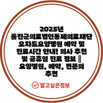 2025년 울진군의 의료진과 진료 시간을 오늘 바로 확인해 보세요.