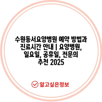 수원동서요양병원 예약 방법과 진료시간 공지 | 요양병원, 일요일, 공휴일, 전연락 추천 2025에 대해 자주 묻는 질문 TOP 5
