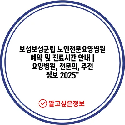 ✅ 보성보성군립 노인전문요양병원 예약 방법을 자세히 알아보세요!