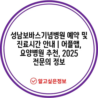 ✅ 성남보바스기념병원의 진료시간과 예약 방법을 꼭 확인해 보세요.