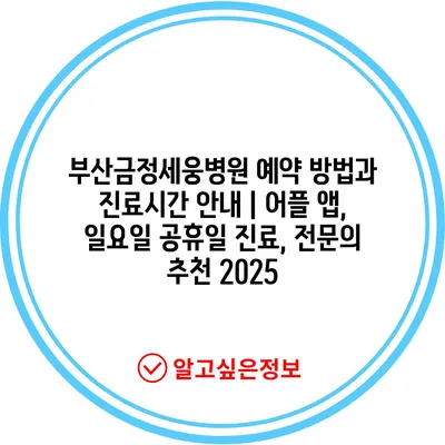 부산금정세웅병원 예약 방법과 진료시간 공지 | 어플 앱, 일요일 공휴일 진료, 전연락 추천 2025 에 대해 자주 묻는 질문 TOP 5