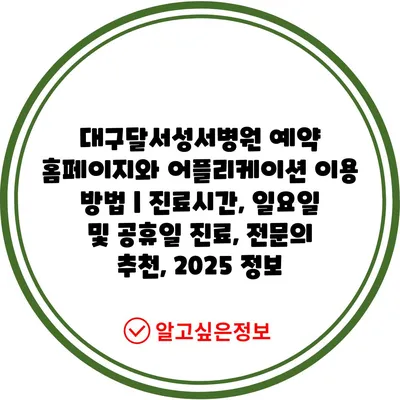 ✅ 대구달서성서병원의 예약 방법과 진료시간을 지금 바로 알아보세요!
