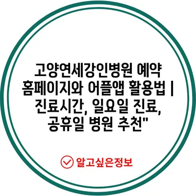 ✅ 고양연세강인병원의 예약 절차를 간편하게 확인해 보세요.