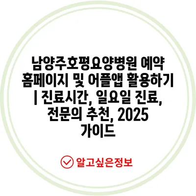 남양주호평요양병원 예약 홈페이지 및 어플앱 활용하기 | 진료시간, 일요일 진료, 전문의 추천, 2025 가이드