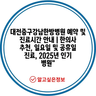 대전중구강남한방병원 예약 및 진료시간 공지 | 한의사 추천, 일요일 및 공휴일 진료, 2025년 인기 병원에 대해 자주 묻는 질문 TOP 5