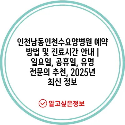 인천남동인천수요양병원 예약 방법 및 진료시간 공지 | 일요일, 공휴일, 유명 전연락 추천, 2025년 최신 정보 에 대해 자주 묻는 질문 TOP 5