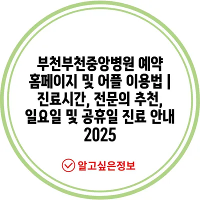 부천부천중앙병원 예약 홈페이지 및 어플 이용법 | 진료시간, 전문의 추천, 일요일 및 공휴일 진료 안내 2025