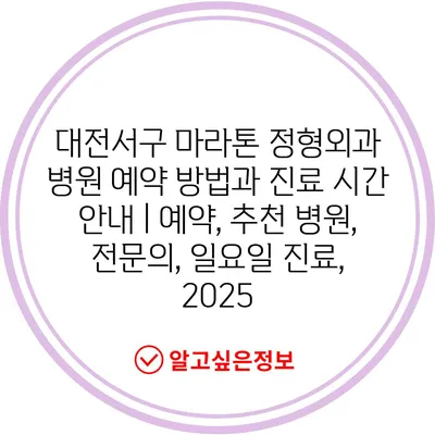 대전서구 마라톤 정형외과 병원 예약 방법과 진료 시간 공지 | 예약, 추천 병원, 전연락, 일요일 진료, 2025 에 대해 자주 묻는 질문 TOP 5