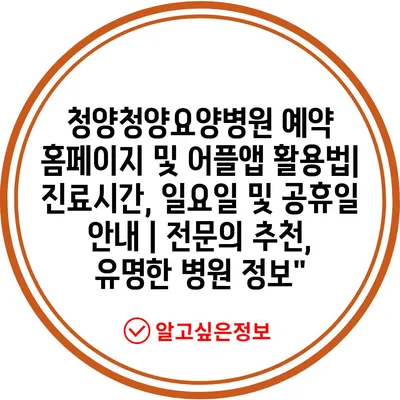 ✅ 청양청양요양병원의 예약 방법과 팁을 한눈에 알아보세요.