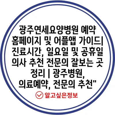 광주연세요양병원 예약 홈페이지 및 어플앱 설명서| 진료시간, 일요일 및 공휴일 의사 추천 전연락 잘보는 곳 정리 | 광주병원, 의료예약, 전연락 추천” 에 대해 자주 묻는 질문 TOP 5