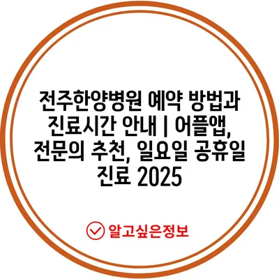 전주한양병원 예약 방법과 진료시간 공지 | 어플앱, 전연락 추천, 일요일 공휴일 진료 2025에 대해 알아보겠습니다.