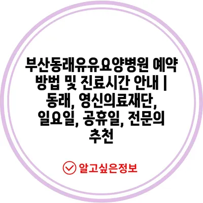 ✅ 동래유유요양병원의 예약 방법과 진료시간을 자세히 알아보세요.