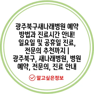 ✅ 광주북구 새나래병원의 진료시간과 예약 방법을 자세히 알아보세요!